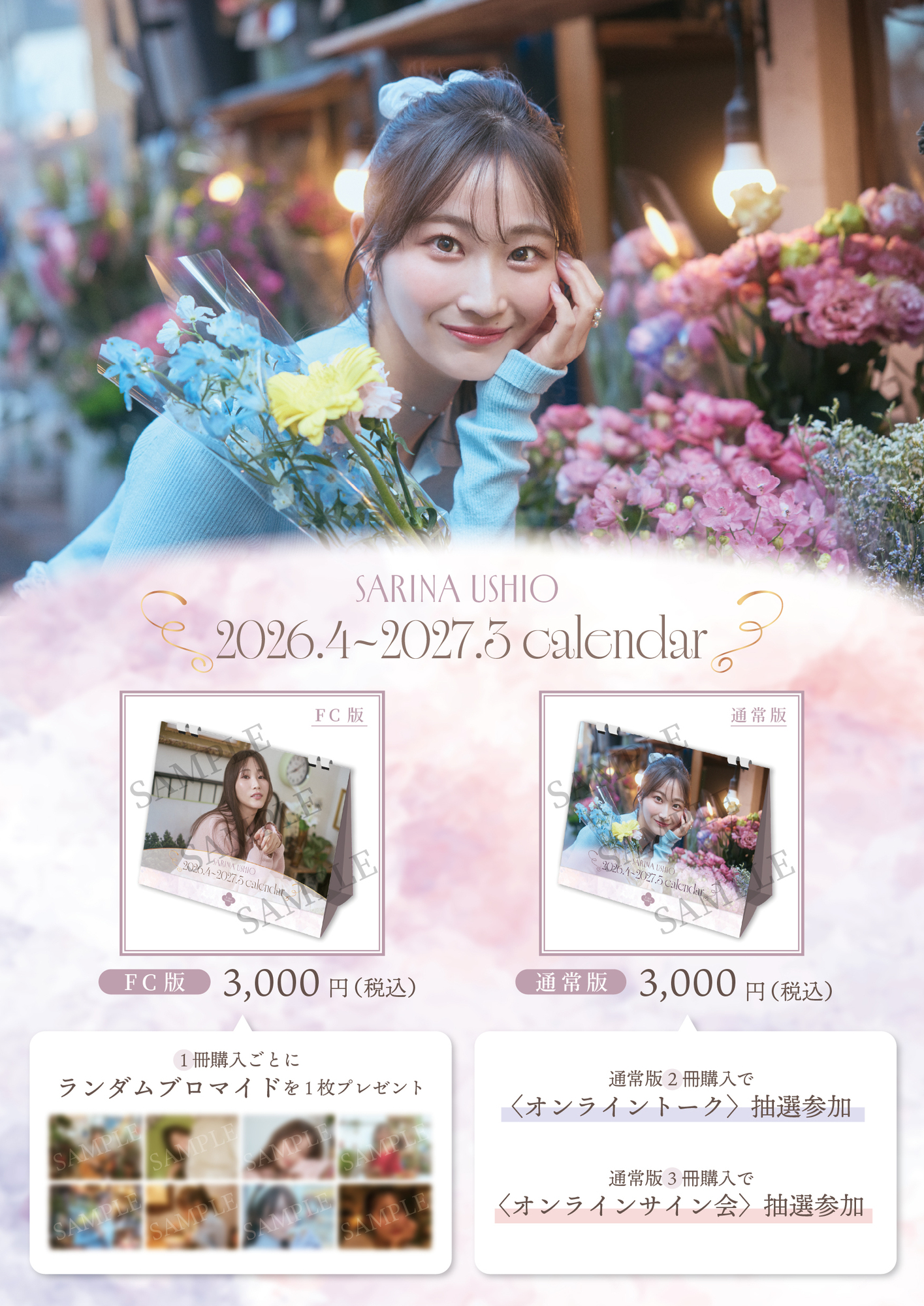 ② 【SARINA USHIO 2026.4-2027.3 Calendar】〈オンラインサイン会抽選権付き〉通常版3冊セット